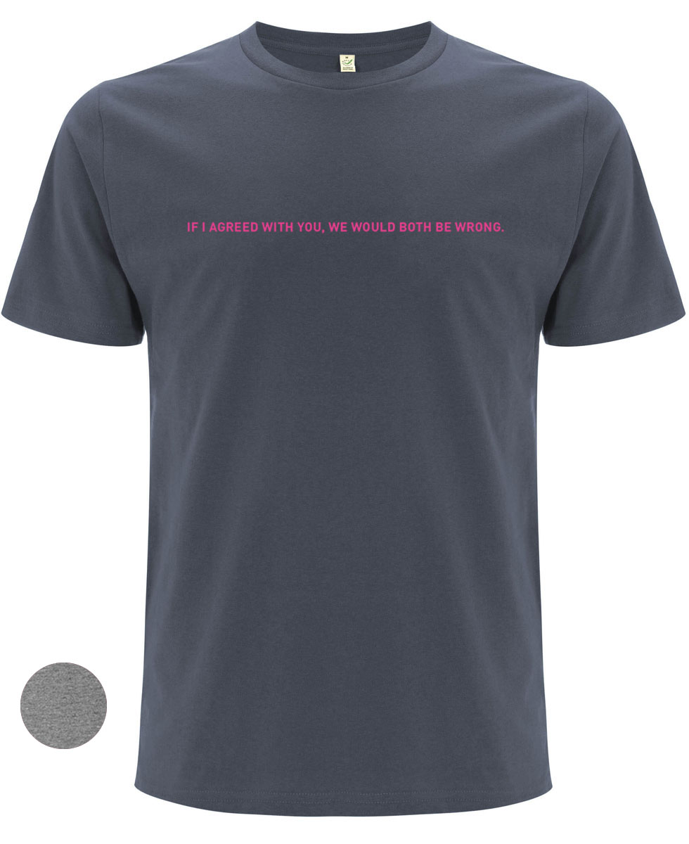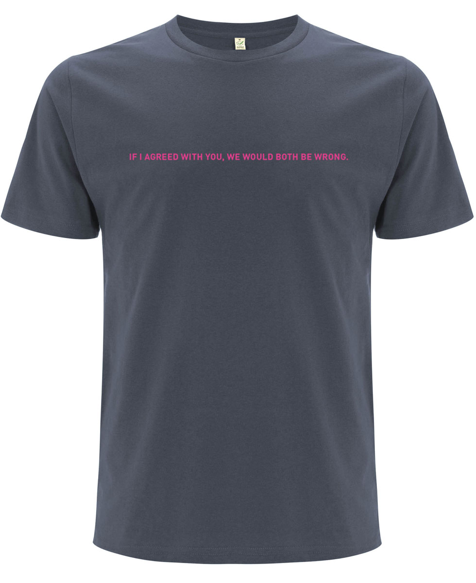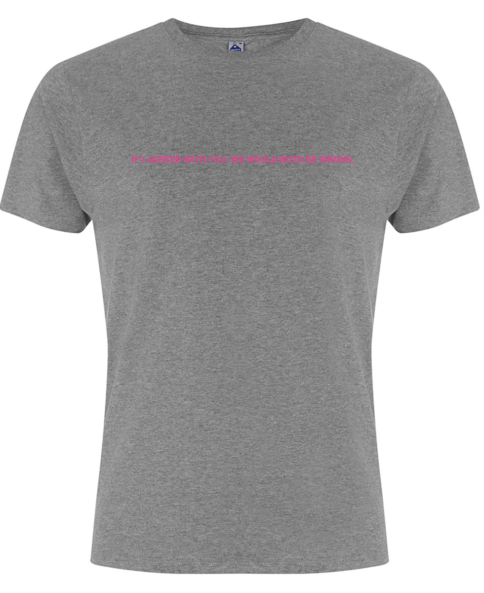 Zum Inhalt springenUnisex T-Shirt. Pink bedruckt mit „If I agreed with you, we whould both be wrong“.