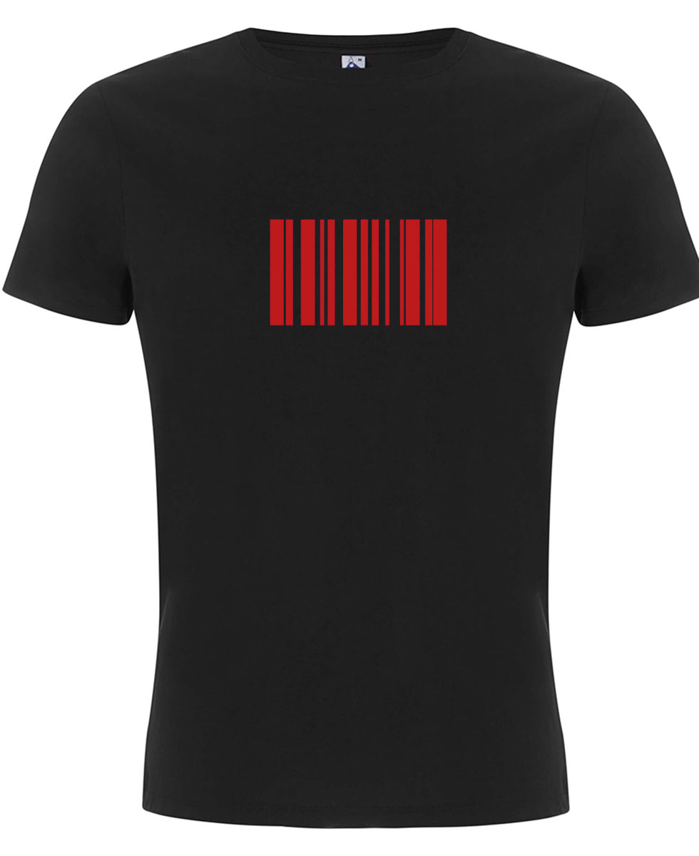 Zum Inhalt springenUnisex T-Shirt. bedruckt mit rotem Barcode.