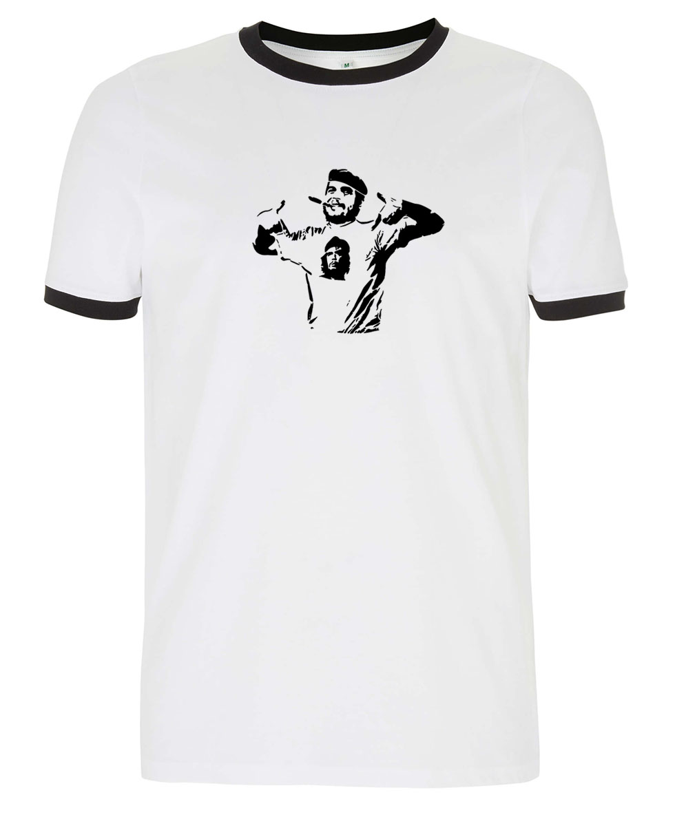 Zum Inhalt springenUnisex T-Shirt. Schwarz bedruckt. Guevara mit Che-Shirt.